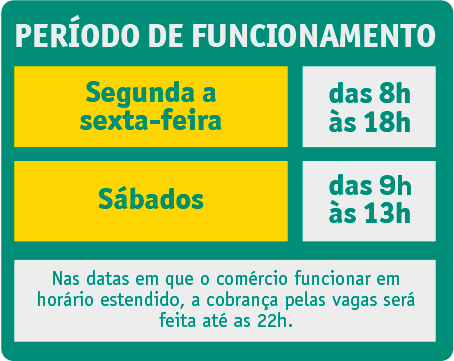 Formas de regularização com opção de frações de 60 em 60 minutos para uso das vagas.
